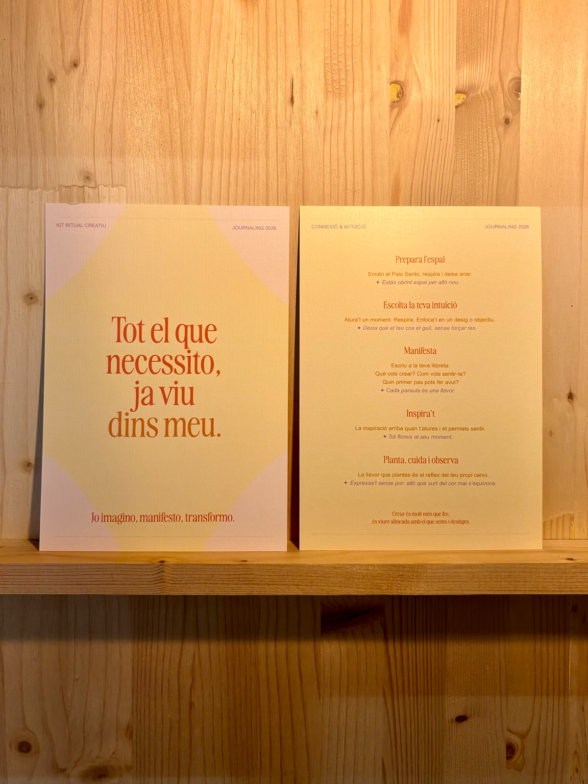 Cada pack s’ha dissenyat cuidant tots els detalls materials, perquè es converteixi en una experiència creativa completa. Es tracta d’un conjunt d’elements pensats per parar un moment, connectar amb el teu poder creatiu i obrir un espai de reflexió i autoconeixement.